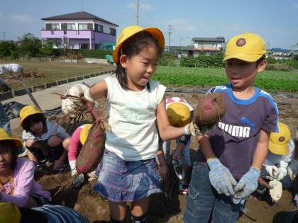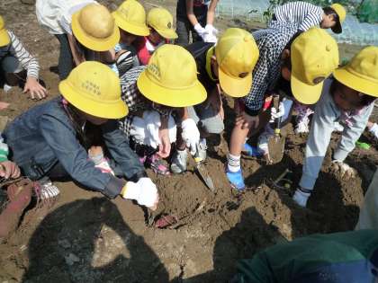 初めは掘ってもなかなかいもがみえてきませんでしたが、しばらくするとごろごろとさつまいもが姿をあらわしました。