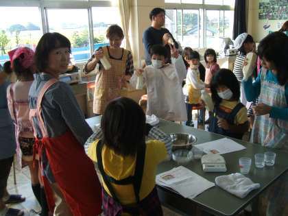 PTA行事「親子ふれあい教室 その3 手作りバターのバターサンド&カルピスでムースづくり」 (H23.10.8)