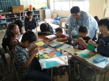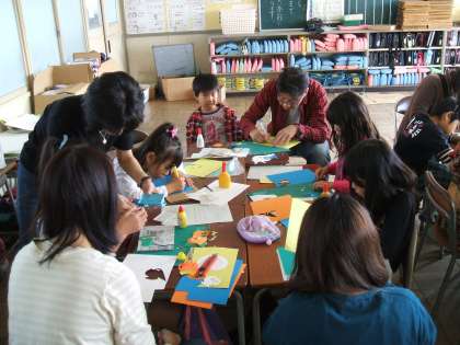 PTA行事「親子ふれあい教室 その4 切り絵のモビール」 (H23.10.8)