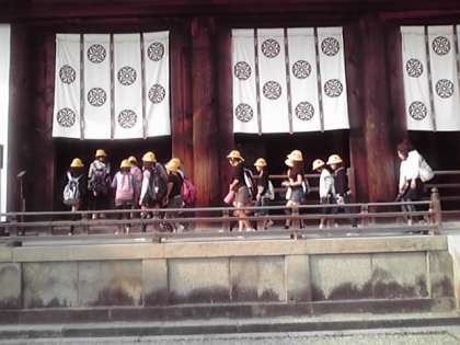 法隆寺では、最初に西院伽藍、五重塔、金堂を見学。いくつもの国宝を見学、一つ一つガイドさんの説明を聞いて勉強をしました。