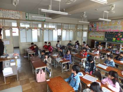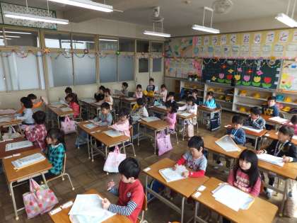 1年2組、3組は、この時間に連絡帳を確認したり、今日配布されたプリントを間違えないように受け取って連絡袋やクリアーファイルに片付けていました。