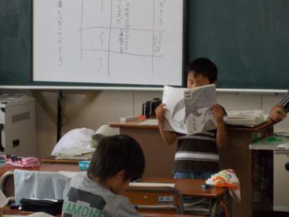 3年2組の国語の授業のひとこまです。「きつつきの商売」の音読に取り組んでいますが、友達の音読を聞いて、どんな点が良かったのか、どんな工夫をしているのかを、メモをしながら進めました。友達の音読発表に、耳を傾けて一生懸命聞こうとする様子が見られます。互いのよさを学び合い、自分の音読をもっともっとよいものにできると思います。