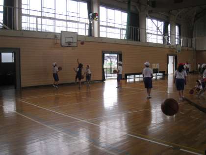 今日は体育の授業でバスケットボールのゲームを行いました。チームごとに分かれ、練習を行い、その後試合を行いました。どのチームも最初に比べて、上手になってきています。今後の試合でのボールさばきや動きが楽しみです。