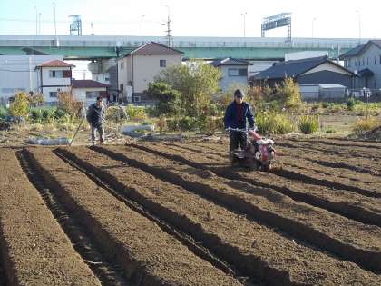 トラクターで土をおこし、耕運機で畝を立ててくださいました。