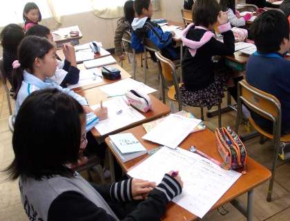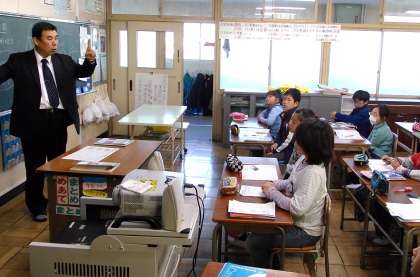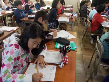 教室をのぞくと子どもたちが黙々と算数の練習プリントに取組んでいました。