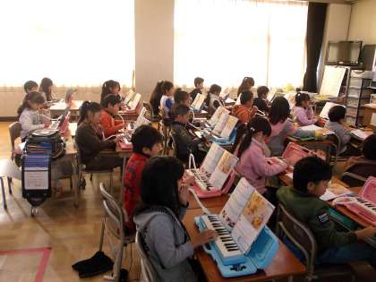 2時間目、校舎の2階廊下に鍵盤ハーモニカの音が大きく響いていました。