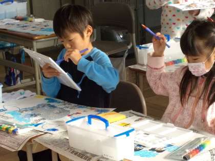 どの子も夢中になって絵を描いています。