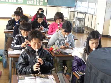リコーダーの合奏の後には、6年生が合唱祭で歌った「君をのせて」の練習が始まりました。何度も耳にしている曲なので、CDに合わせて口ずさむ子ともたちが何人もいました。