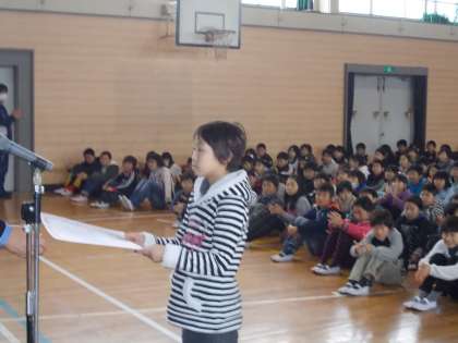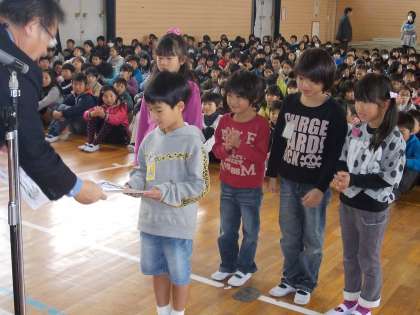 「がんばっている子どもたち」 全校集会で(H24.12.17)