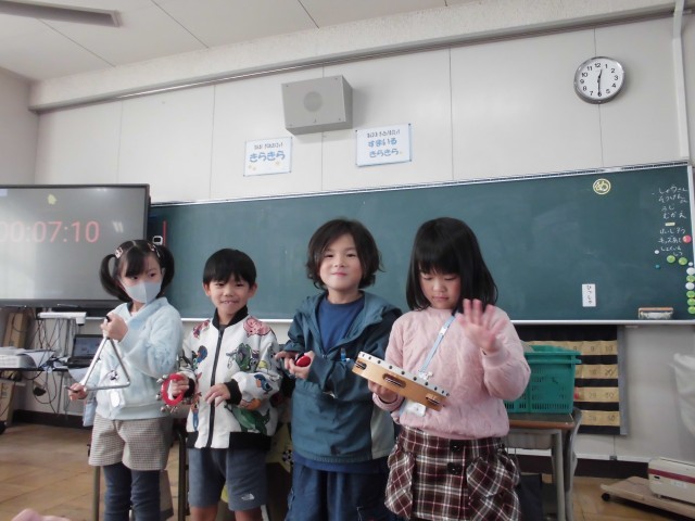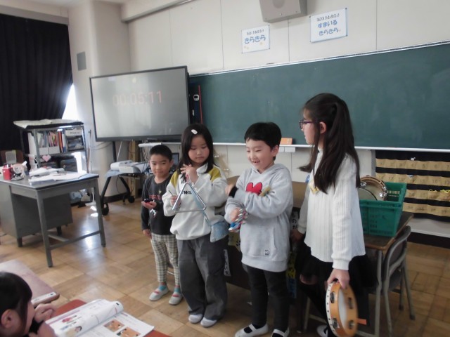 音楽の時間に楽器を演奏しました。リズムや強さを工夫して上手に演奏することができました。