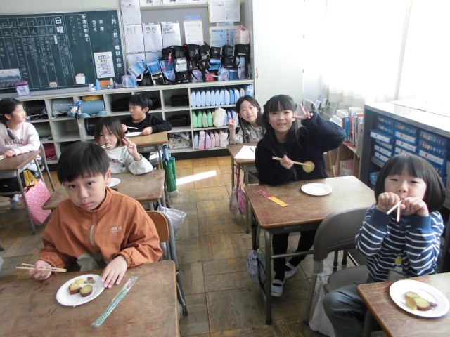 生のさつまいもと加熱したさつまいもの違いを観察し、しっかりと味わって食べました。