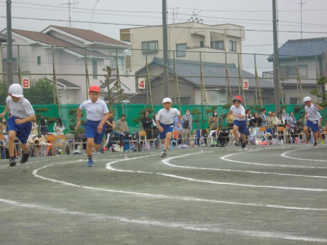 今日は運動会でした。徒競走では初めてのトラック走に挑戦しました。どの子も最後まで自分のコースをしっかりと走ることができました。