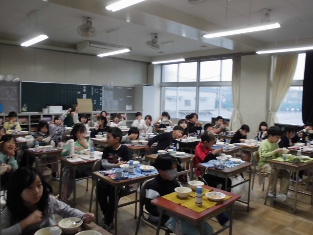 出来上がった豆腐を見て感動する姿や、自分で作ったからおいしいねと友だちと話す姿が印象的でした。