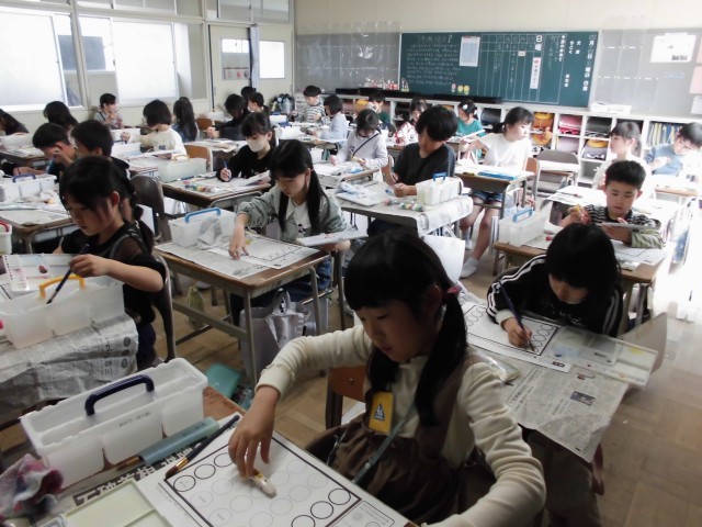 同じ学年の友達や他の学年の児童の作品の素敵なところを見つけて鑑賞カードに書くことができました。
