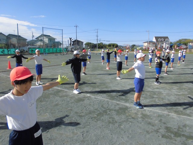 運動会では、綱引きの前に「一宮ダンス」を踊ります。今日の練習では、肘を伸ばしたり体を大きく動かしたりと精一杯踊ることができました。