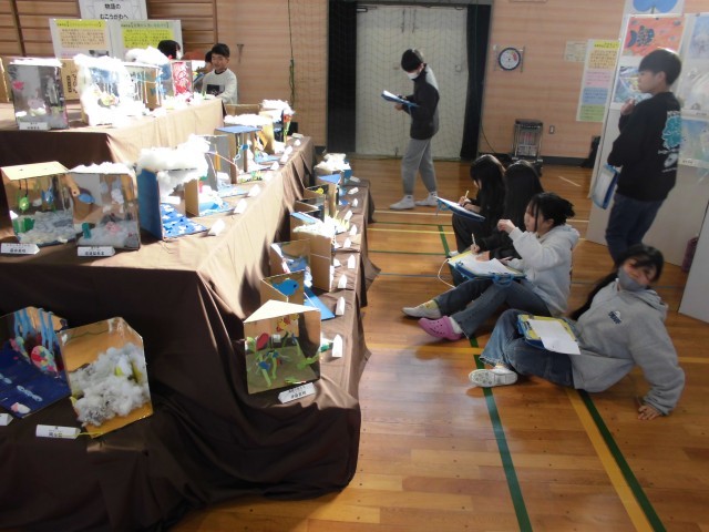 本日、展覧会の鑑賞を行いました。自分たちの作品を見比べたり、他の学年の作品の工夫を見たりすることができました。明日は保護者の方々にも作品を見ていただけます。思いのつまった6年生の作品を見ていただければと思います。