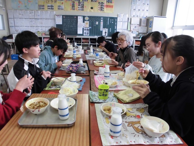 本日、6年生では卒業茶会が催されました。「忙しい時期にほっと一息できるように」という地域の方や保護者の方のご協力で、楽しくすてきな時間を過ごすことができました。多くの方に素晴らしい時間を作っていただけたこと、心より感謝申し上げます。ありがとうございました。写真は1組の茶会の様子です。
