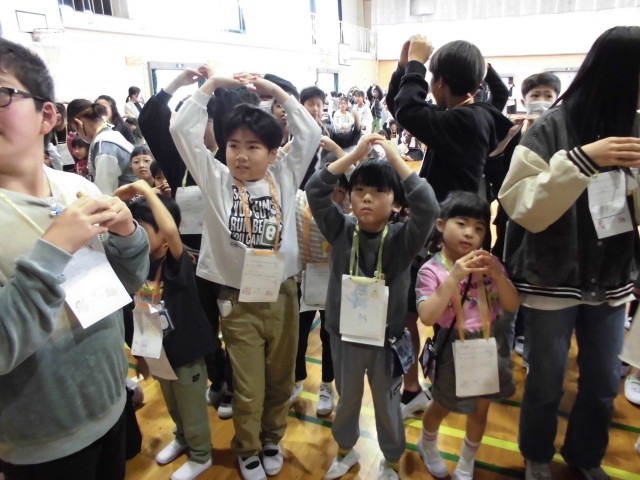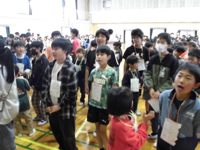 1年生を迎える会とペア結成式を行いました。6年生は、ペアの1年生の子と手をつないで一緒に入場しました。その後、ペアの子と自己紹介のカードを交換たり、一緒にクイズの答えを考えたりして仲を深めました。これから1年間、ペアでの活動が楽しくできるとうれしく思います。