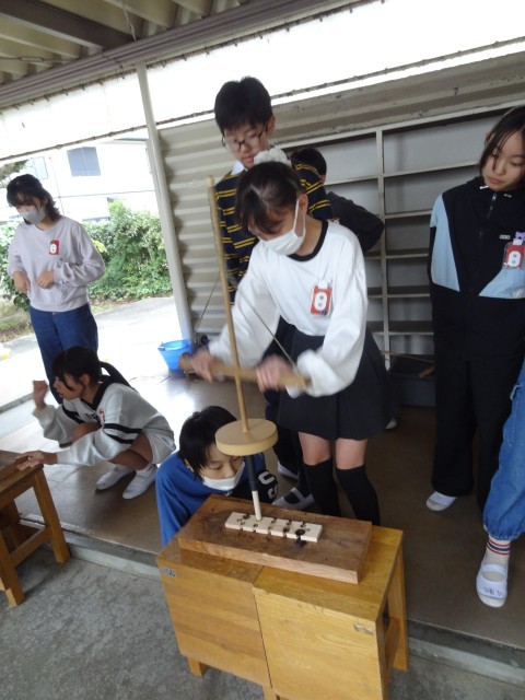 火起こしでは、まいぎり式火起こしを体験し、実際に火種になるところまでできる児童もいました。