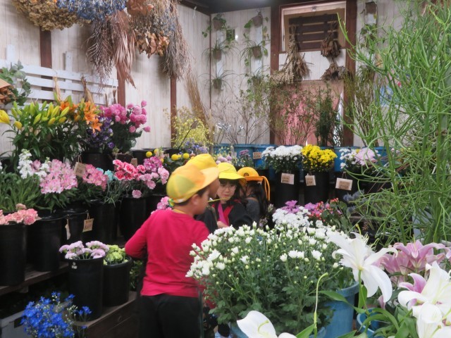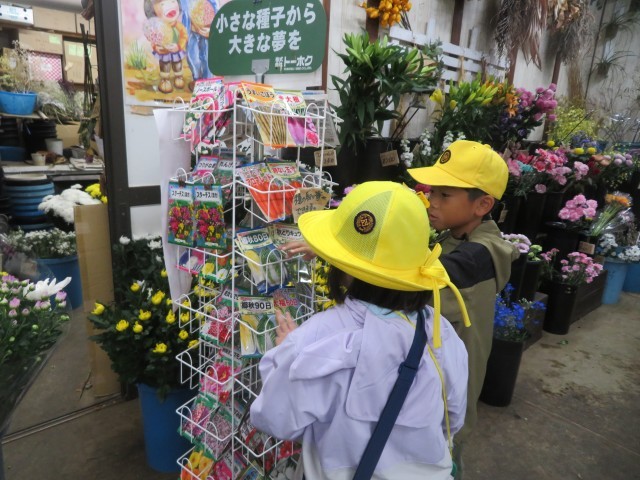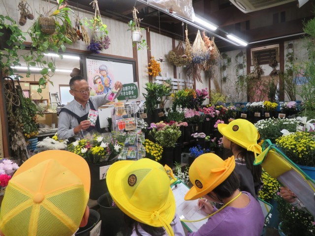 今日は花つばきへ町探検に出かけました。お花屋さんの大変さや、やりたい仕事に向かってがんばる気持ちを教えていただきました。