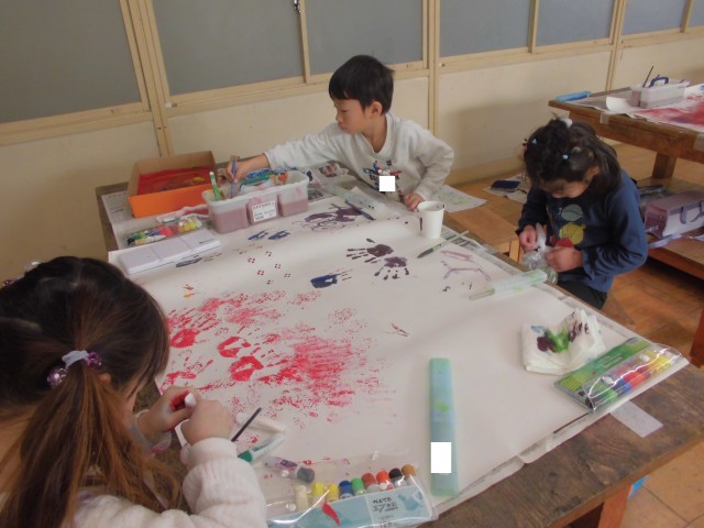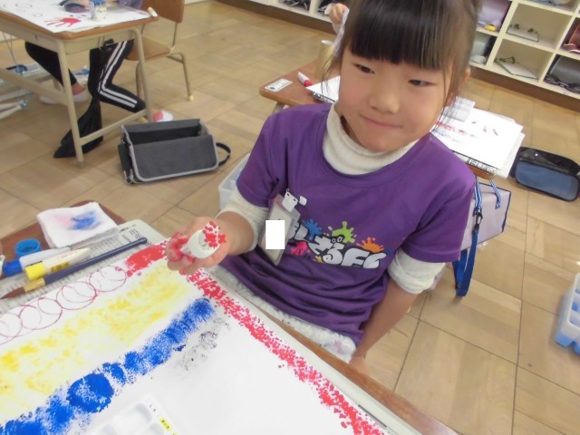 図工では、「ぺったんコロコロ」に取り組みました。ご家庭での材料集めのご協力、本当にありがとうございました。子ども達は、素材の違いによって写る形が違うことに気付き、いろいろな素材を組み合わせて、楽しみながら作品づくりに取り組むことができました。