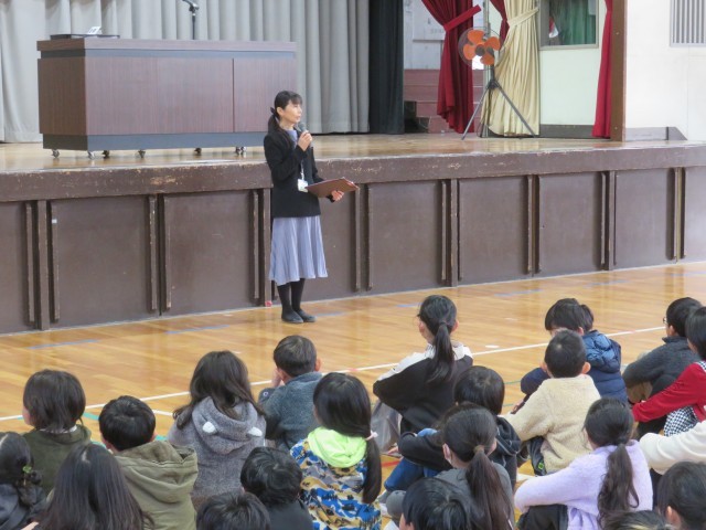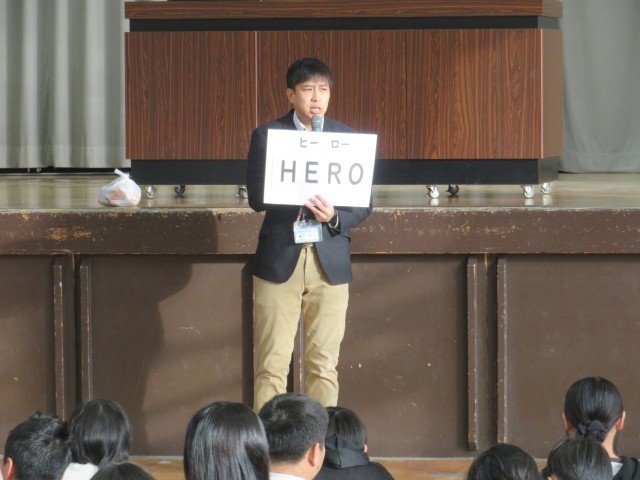 生徒指導の先生からは、地域の公園のごみ拾いに進んで取り組んだ子の話から、「この冬休みは、家のことや手伝いなど、地域や家庭の『HERO(ヒーロー)』になってくださいね」という話がありました。