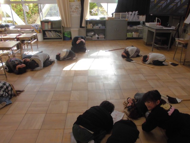今日は、避難訓練がありました。掃除の時間に行ったため、教室だけでなく、廊下やトイレからの避難をする子もいました。場所に応じて身の守り方を自分で考え、安全に避難することができました。自然災害は、いつ、どこで起こるか分かりません。お家でも話し合って、いざという時に自分の命を守る方法を知っておけるといいですね。