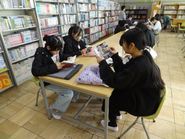 2月13日まで読書週間中です。普段はあまり図書館を利用しない児童も、落ち着いて読書に取り組みました。読書週間中のイベントである「読書ビンゴ」や「ペア読書」にも取り組んでいきます。