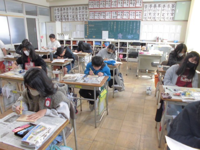 ふたの部分には、それぞれが描いた絵を彫刻刀で彫る作業があります。