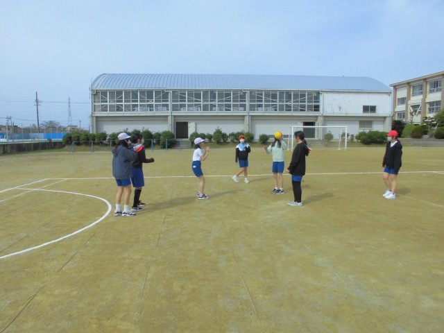 体育では、外でハンドボールをやっています。