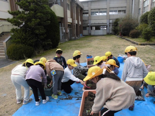 今日は、3年生の理科で使う、キャベツを植えました。3年生でどんな勉強をするのか、今から楽しみですね。