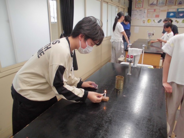理科の授業で火を使います。今ではなかなかやらなくなりましたが、マッチで火をつけてみました。