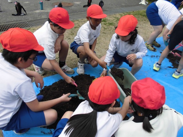 4年生 ヒョウタンの種を植えたよ 4月22日