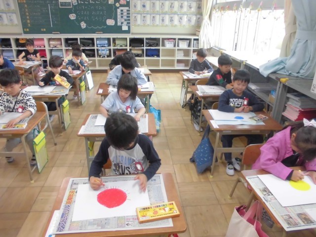 図工の時間に「わたしのおひさま」を描きました。