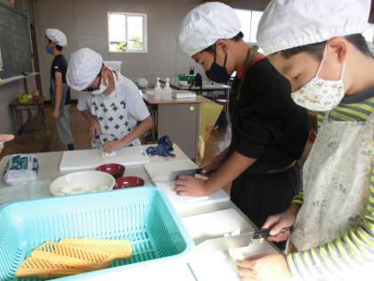 大根をいちょう切りで切るテストも行いました。慣れた手つきで大根を切っていく子もいました。これからも自分でできる調理には家でも積極的に取り組んでいってもらいたいと思います。