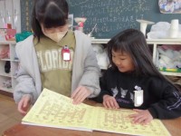 図書館の使い方を紙芝居で聞き、好きな本を1冊借りました。