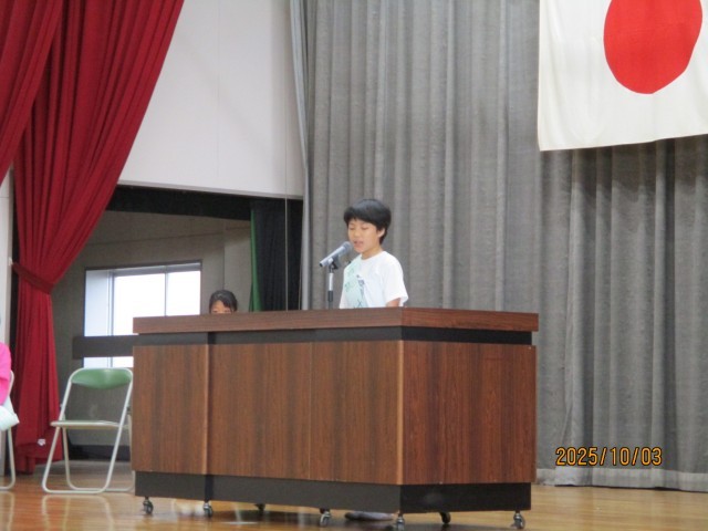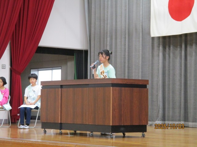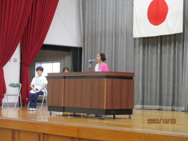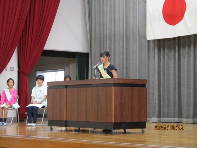 3日に行われた後期児童会役員選挙での立会演説の様子です。