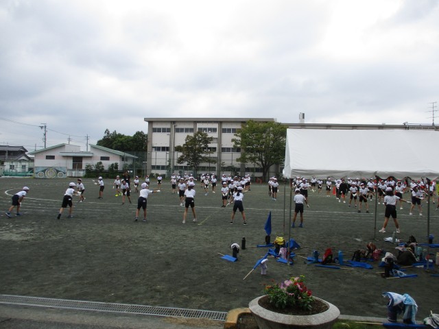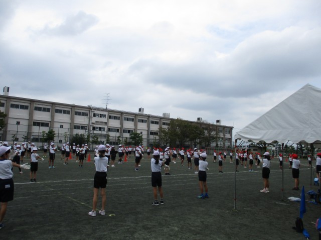 高学年の運動会練習、今年から新しく始まる北方っ子体操で準備運動をしていました。体育委員のみなさんが北方っ子体操のお手本を示します。音楽にのり自然に体が動く体操です。運動会でお披露目します。お楽しみに!