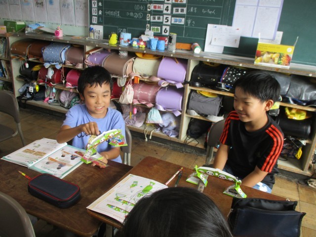 じょうぎや鉛筆の重さを、1円玉の何個分なのかを調べました。1円玉の重さがちょうど1gなので、鉛筆の重さは、1gの□こ分で□gと表すことを覚えました。