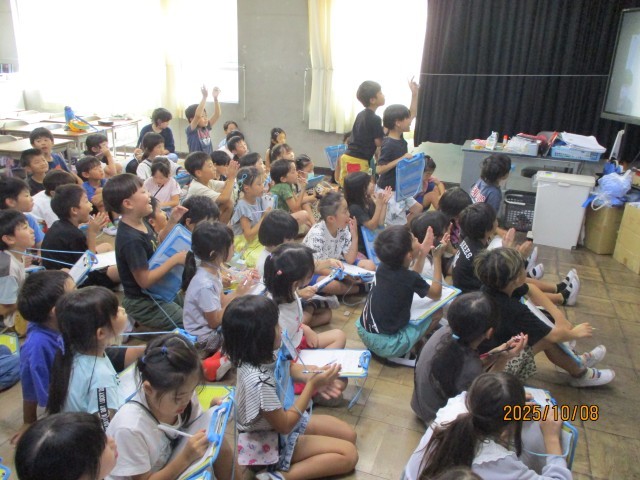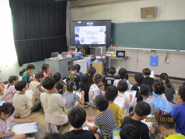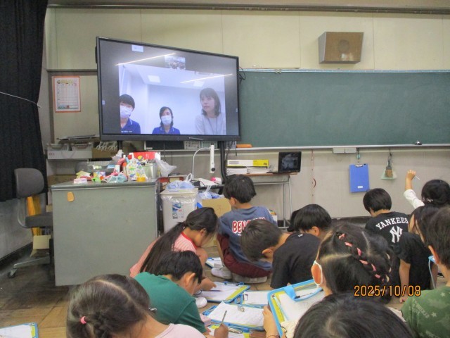 生活科の学習で、図書館について調べています。今日は、中央図書館の方に、リモートで、みんなからの質問について答えていただきました。しっかり聞いて、メモしていました。学校の図書館との違いにも気付くことができました。