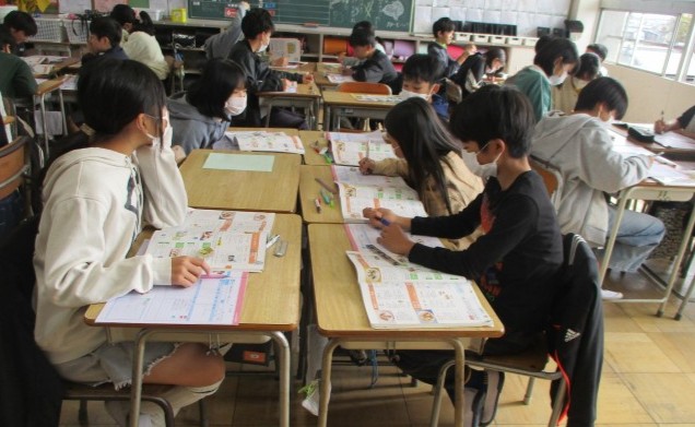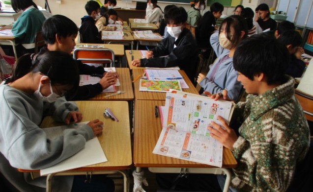 家庭科では、調理実習の計画を立てています。材料や用具などの確認をした後に、調理の手順に沿って分担を決めました。協力して実習ができるように計画していきます。