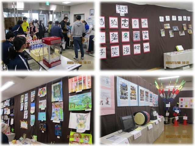 公民館の中では、子ども会の作品や3年生で学習する「芭蕉おどり」の紹介などが展示されていました。また、絵画や書、飾りや置物など、北方町の郷土作家の皆さんの素敵な作品も数多く出品されていました。