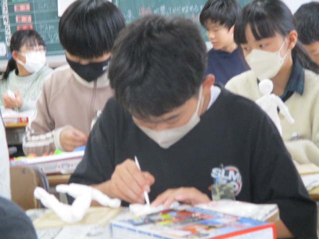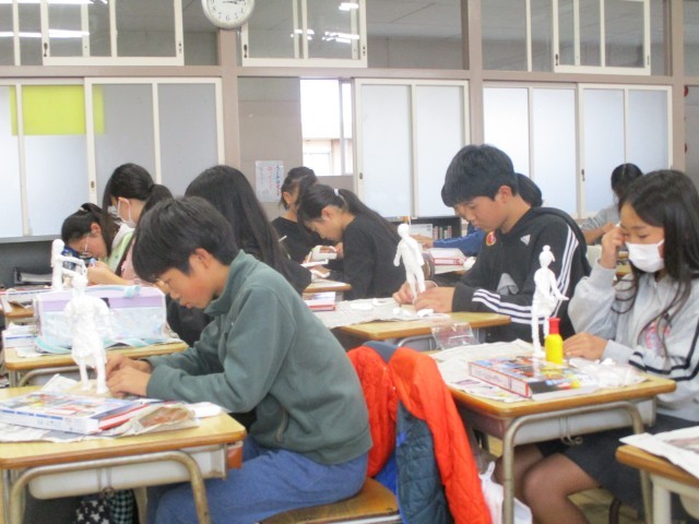 図工の様子です。未来のわたしを想像して紙粘土で自分の姿を創りました。完成が楽しみです。