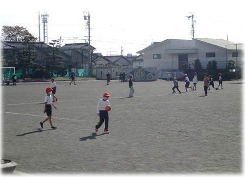 すっかり寒くなってきましたが、今日はとても暖かい日です。中間放課に運動場で元気に遊ぶ北方っ子たちです。