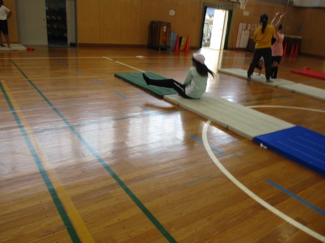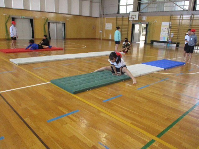 次回のマット運動は、いよいよ最後の発表会です。今日はリハーサルとして、技のつなぎや構成を確認していました。