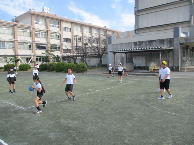 11月17日 体育の授業 (4年生) 公開日 2025/11/17 更新日 2025/11/17 4年生 体育でポートボールを行いました。チームで協力してパスをつなぎ、ゴールを決めることができていました。