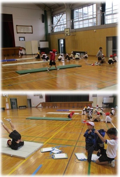 11月25日 マットあそび(1年生) 公開日 2025/11/25 更新日 2025/11/25 1年生 今まで練習してきた成果を発表しました。マットの上で、いろいろな転がり方や技ができるようになりましたね。