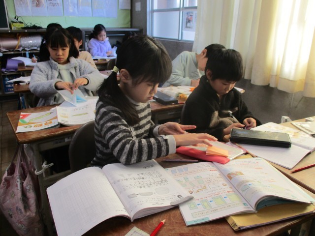 多角形の直角について学びました。身の回りにはどんな直角が隠れているのかを、真剣に探しました。