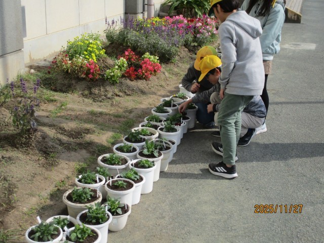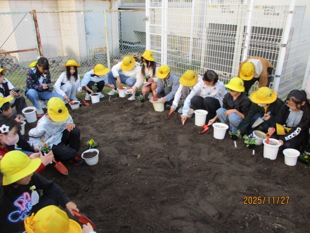本日は3月の卒業式に向けて、新しい苗を植えました。