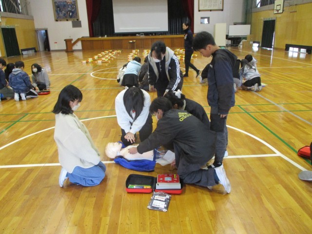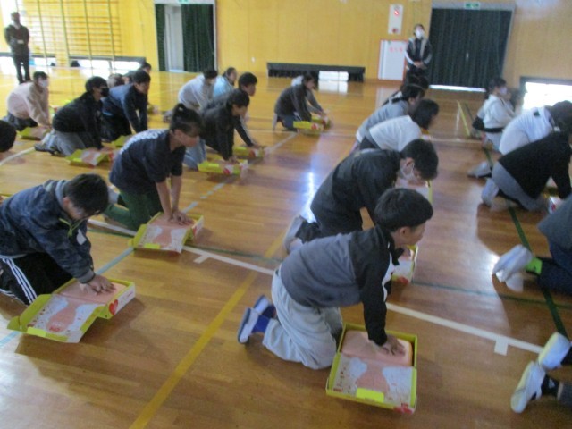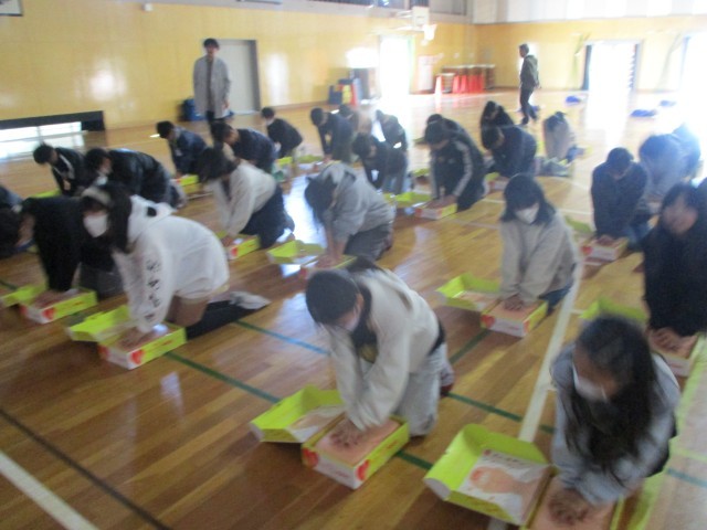 心肺蘇生法を行いました。胸骨圧迫の仕方やAEDの使い方を実践を通して学びました。今後万が一の時はぜひ今日学んだことを生かしていってくださいね。